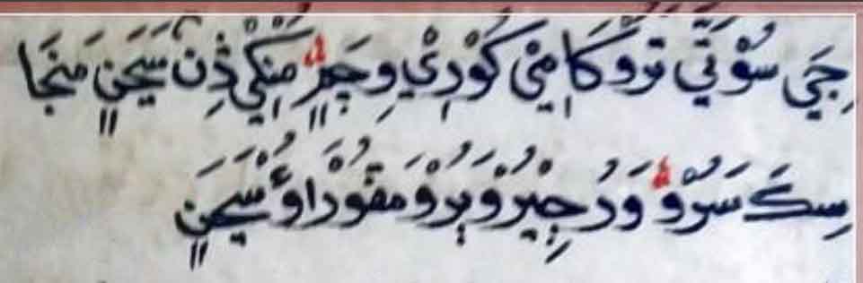 مُنْـکٖيْ ڎِنٌ سَڃَن﮼ مَنجَا سِڪَ سَرُوْ﮶