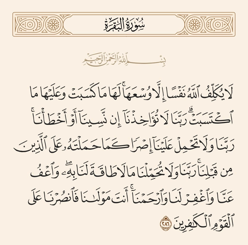 لَا يُڪَلِّفُ اللَّهُ نَفْسًا إِلَّا وُسْعَهَا بابت