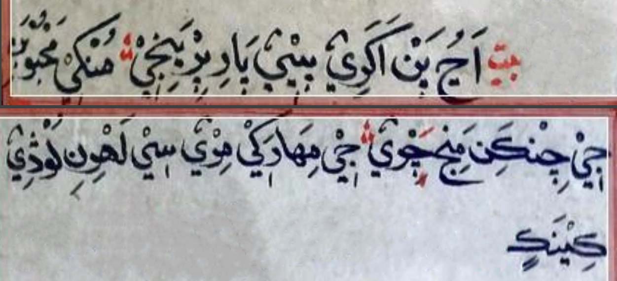 اَڃُ پَنْ اَکَرِيٌ پٖيْيٌ پَارِ پِرْيَنِجٖيْ﮶