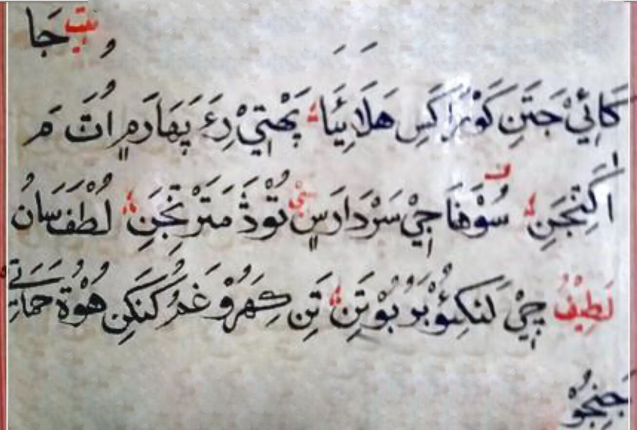 لُطُفَ سَانُ لَطِيْفُ چٖيْ لَنکِئُوْ بَرُ بُوْتَنِ﮶