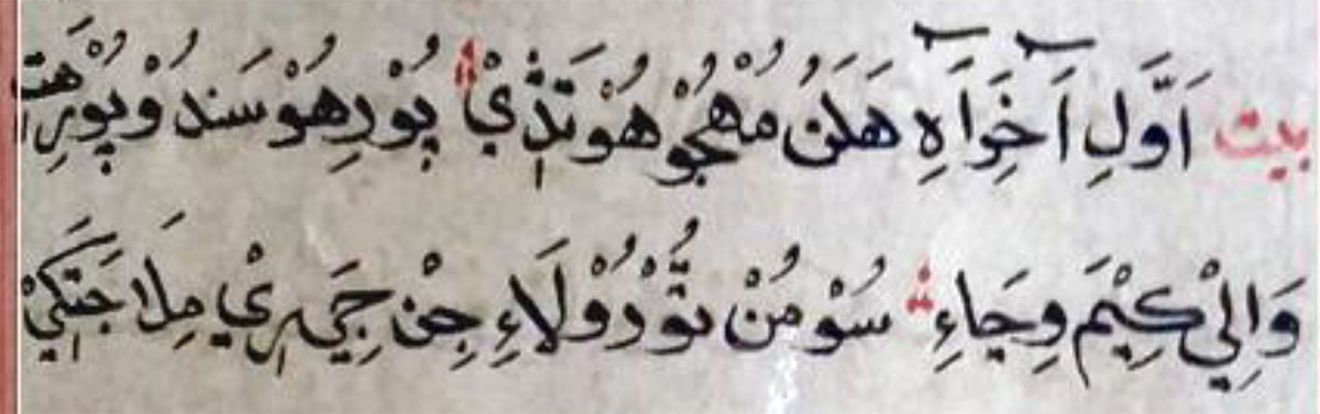 - (بيت) اَڄُ نَہ مَنُ قَرارُ، ڏِٺُمِ…