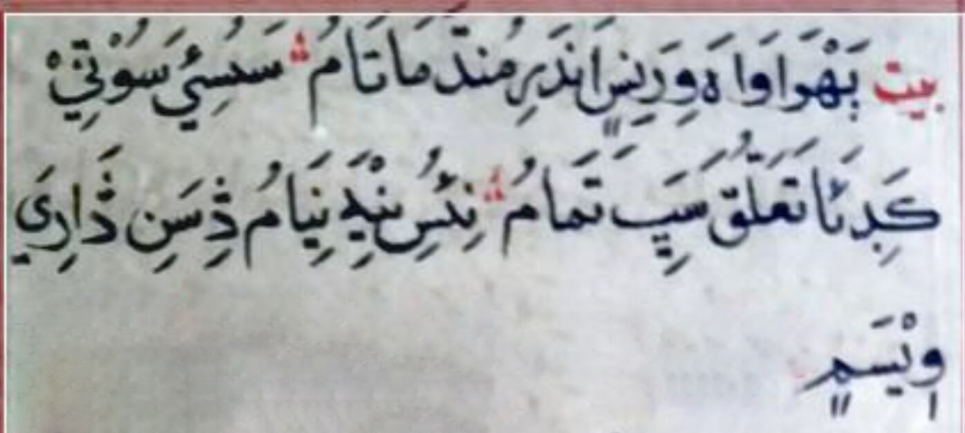 - (بيت) پَرِيندي پاڻُ وِئو، زُلفَ زورُ…