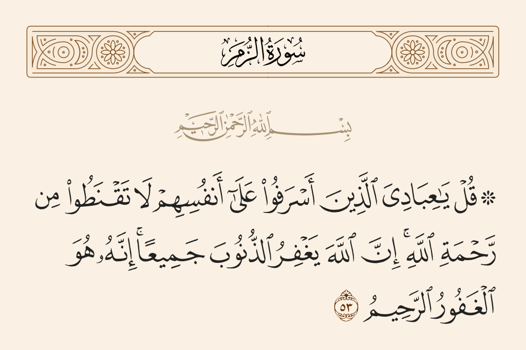 ”بيشڪ الله سڀ گناھ بخشي ڇڏيندو.“ (قرآن مجيد جي سورہ الزمر جي آيت نمبر 53)