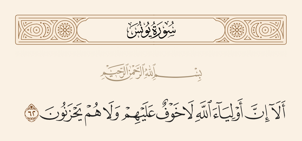 قرآن پاڪ جي سورت يونس جي ھيءَ ھڪ آيت آھي جنھن جو مطلب آھي تہ: ”انهن کي ڪو خوف ناھي نہ ئي وري اھي ڏکارا ٿين ٿا.“