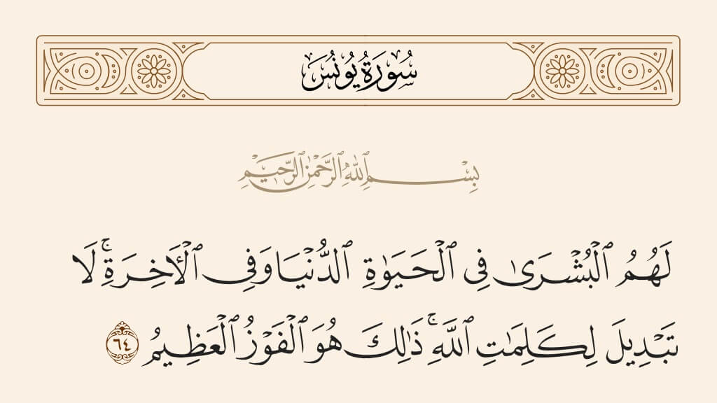 ”انهن لاءِ خوشخبري آھي.“ (قرآن مجيد جي سورت يونس (آيت نمبر 64) ۽ سورت زمرد (آيت نمبر 17) جو ھڪ حصو)