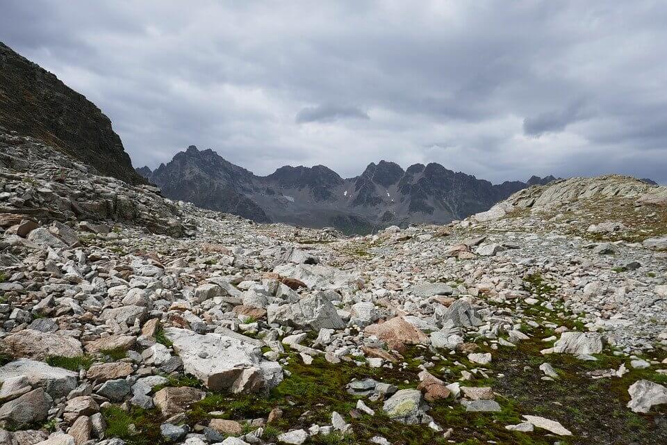 Stones, mountains, hills.