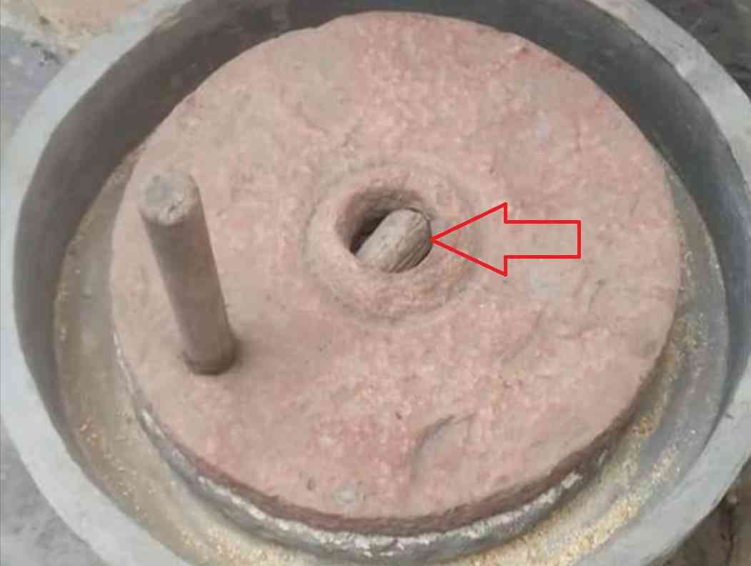 Intake place of hand mill where grains poured. Hole.